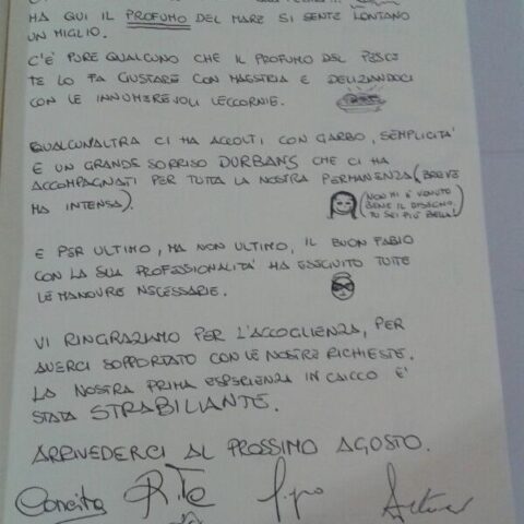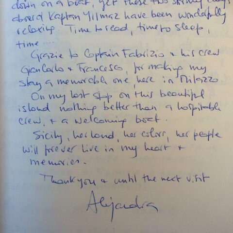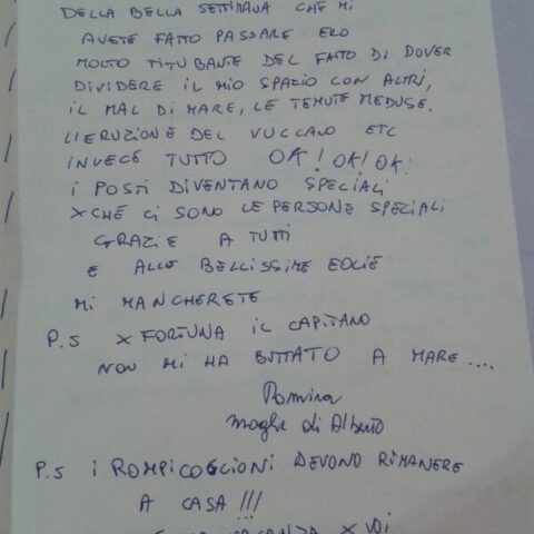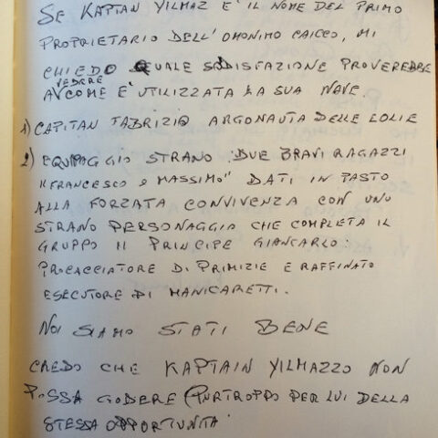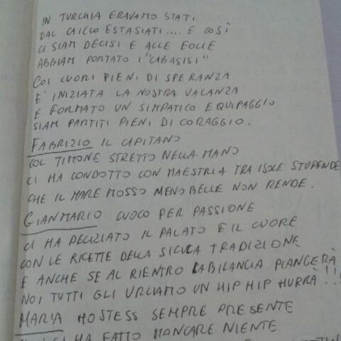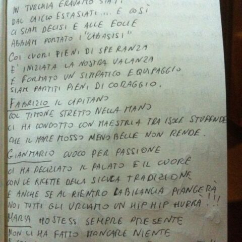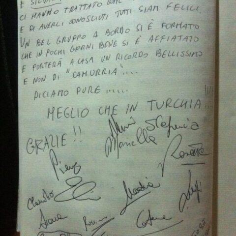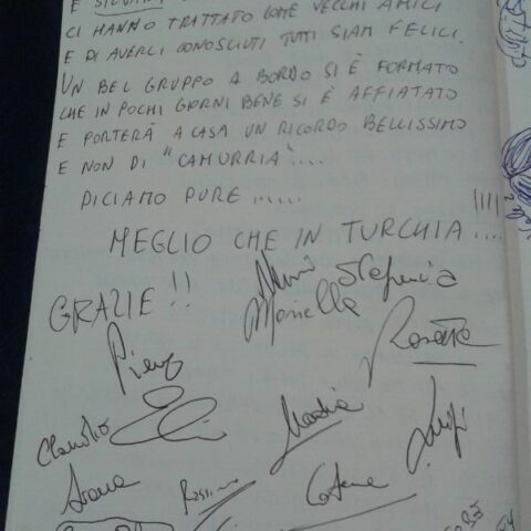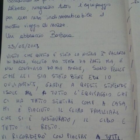 Le impressioni lasciate in modo spontaneo, scritte a penna per trasmettere al meglio le sensazioni che hanno provato, per regalarVi un “antipasto” riguardante la vostra Crociera in Caicco.